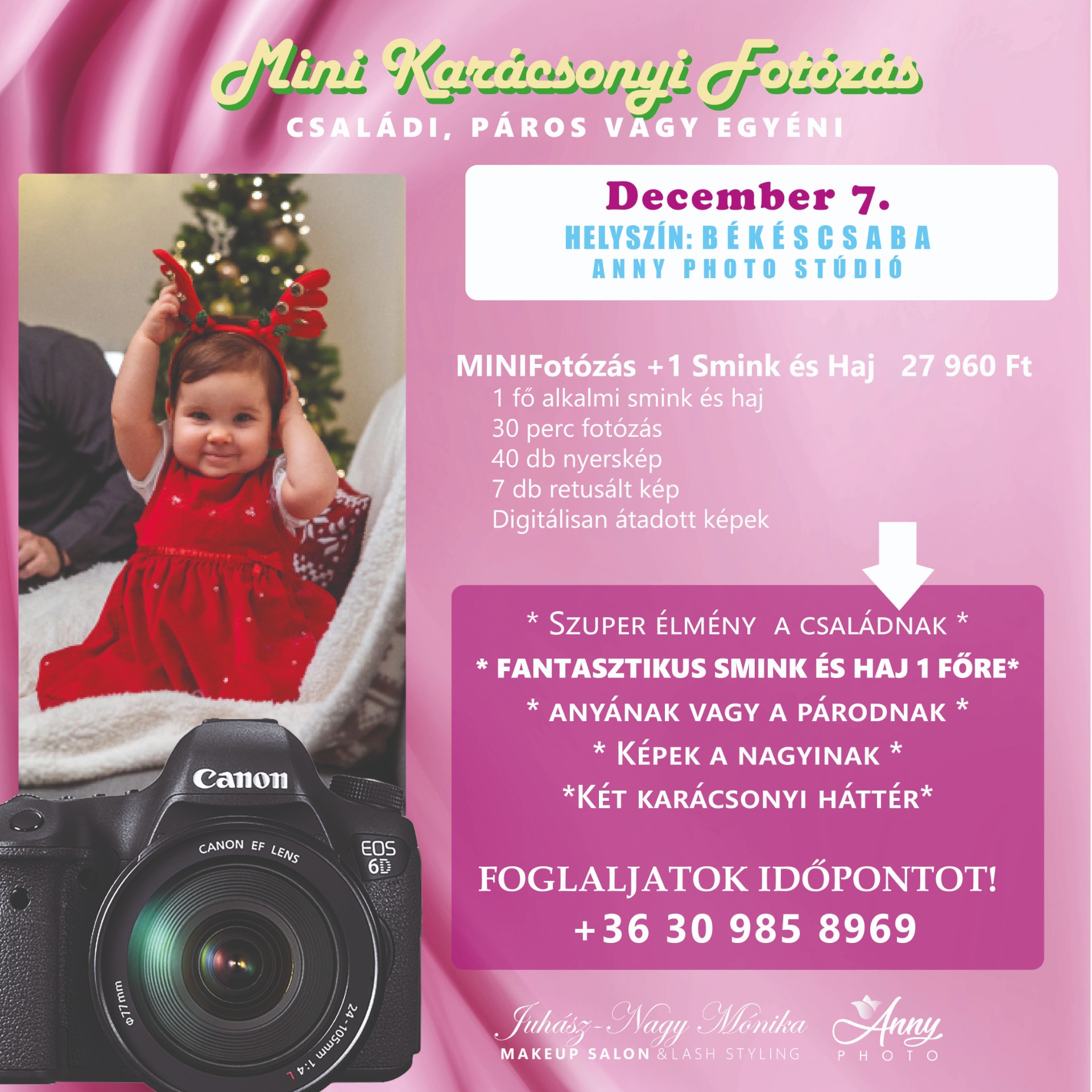 MINI Karácsonyi Fotózás 27 960 Ft Smink és haj: Juhász-Nagy Mónika